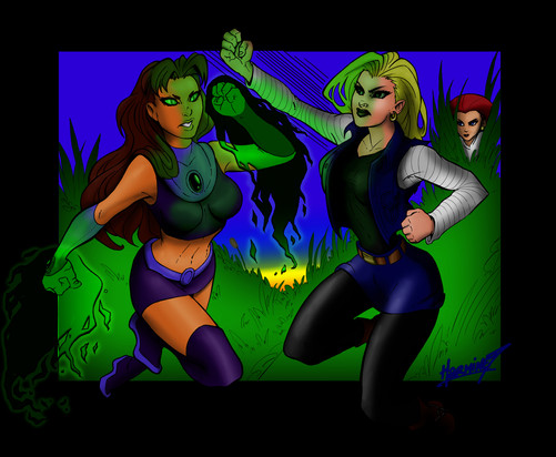 android 18 starfire and jessie ^_^ first of all here is the link to the original! [link]drew this for me when i won the SSS Game request thingy! and I thank her so much for that! I love this picture! of course my colored version is nothing compared to hers! you should also deviantwatch her! she has AMAZING art work and is such a nice girl! anyways thanks a bunch to :iconj0kerWILD: