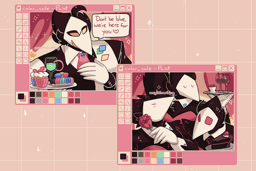 #cafe #color #suits #lilidraw #deltarune #lili_draw #colorcafe #swatchlings #color_cafe #chapter2 #digitalart #gentleman #manly #pastelcolors #restaurant #servants #swatch #videogames #deltaruneundertale #deltarunefanart #deltarunechapter2 #swatchling #swatch_deltarune
