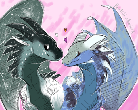 Some Thoughtout! I wish there were more interaction between them, but I'm also glad there isn't too much because it gives me room to have all the headcanonsWhiteout is painting a painting of her family, and asked Thoughtful to help. I think they probably painting together, Thoughtful isn't super good at painting but he tries his best to improve to make Whiteout happy.