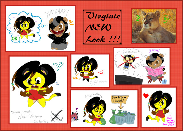 I remember the old Virginie, she's still as cute as a button. Don't let those morons make you get rid of her because they didn't like your art, she wasn't a bad character and never will be. Of all the Virginie pics here, my favorite ones are the realistic Puma one on the bottom, the Super Cougar right next to it, the skating Virginie, and the Salute Virginie.