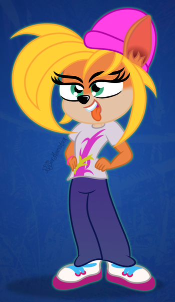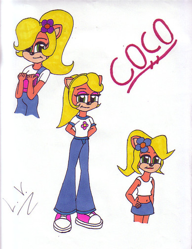 No nothing to do with Sonic Riders (just in case ppl ask) but this based on an action figure of Coco.Many years ago in my tomboy phase, still am lol, I used to collect action figures. This Coco had green sweat pants and a white tank top. This design was in none of the game series just the action figure.