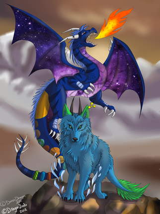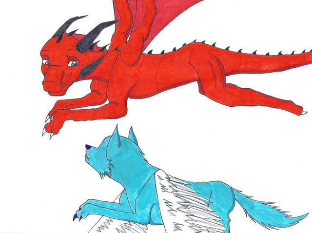 Very cute dragon and fox friends. The pose looks very beautiful. Nice picture ☺