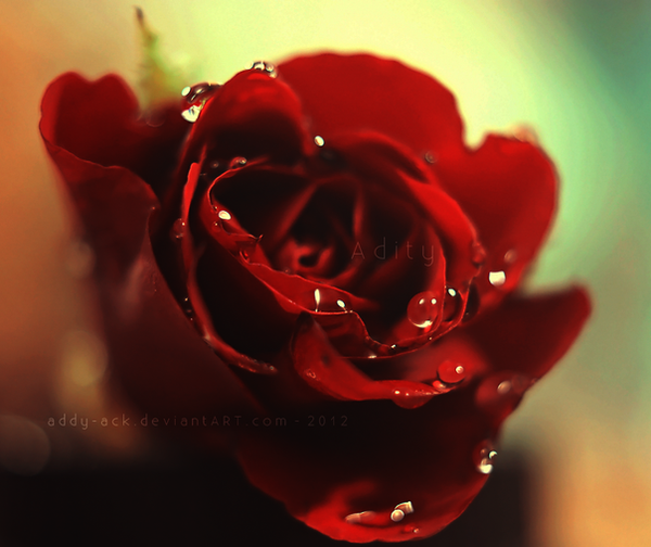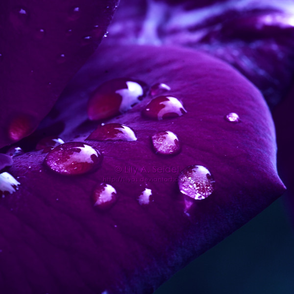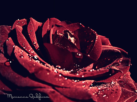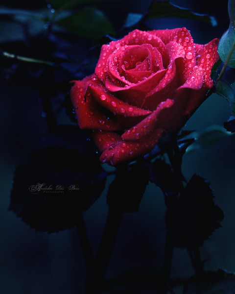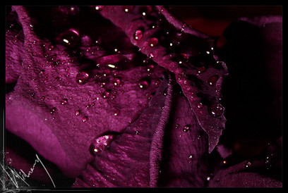 They grow in my neighbours garden, the whole garden is full of roses. I desaturated the background to bring out the amazing color of the petals. also the drops add to the whole composition.