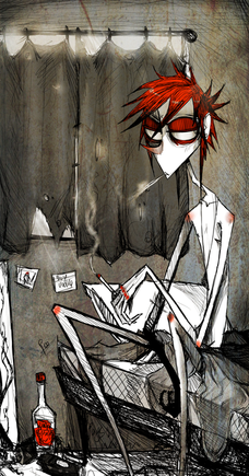 I think this is a marvelous style combined with such well-done shading. Though it's a shame he's been altered in such a way. It prevents him from being fully fleshed out..But maybe that was the whole point..