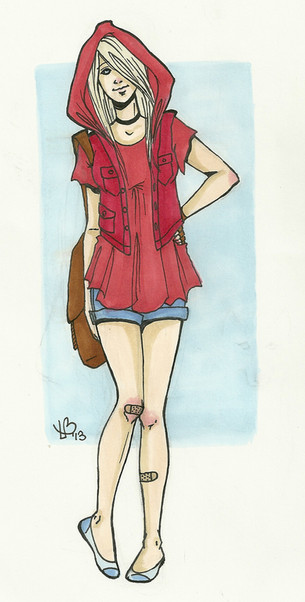 Doodle of Red Riding Hood Iris done today while I was sick at home (again *le sigh*).Haven't been drawing much lately, mostly croquis, studies and coloring for the Red Riding Hood comic.