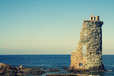 Torre del Rio de la Miel. The remains of one of the many guard towers along the coast. Somewhere between Nerja and Almunecar, Andalusia, Spain.Related content