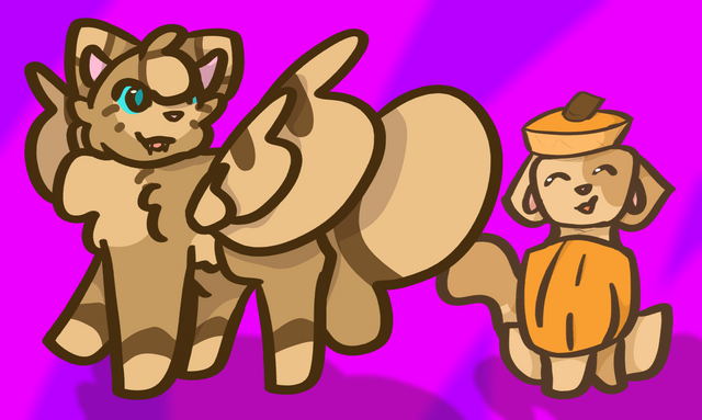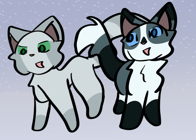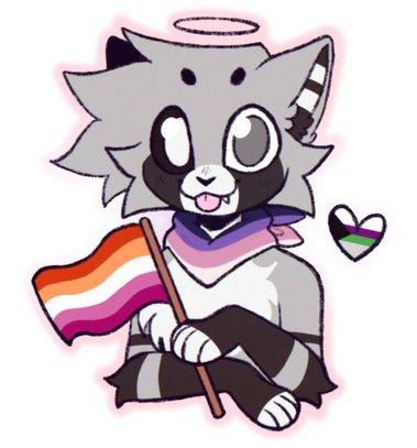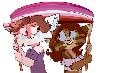 I know this is super late but, it's done! Yay!!These are two of my favourite Clangen cats; Slightfur (left) and Moonpounce (right) celebrating their lesbian and bi flags respectively 😃