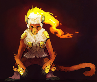 info: (feel free to change!! optional of course ) The real King of the jungle, Their vibrant primary colours are unique to them in their pack,they are the leader of many smaller monkeys;about half the size of themself. which they can control to cause huge amounts of trouble and destruction to towns and even cities. Big sense of ego, but never does the dirty work themselves. if separated from the rest of the group they're actually quite timid and even gentle-natured. Loves fruit, and often picks out certain colours of fruit to eat to match their fur/skin colour, for no real reason except they like colour coding.