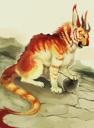 info: (feel free to change!! optional of course ) Mostly lives in the water, but when its raining, comes out and grazes on river weeds and grasses. its bright red top half of its body stands out brilliantly in the somewhat dull environment it lives. And people often take a chance to go out into the rain to catch a rare sight or take a picture of them. rumored to bring luck.