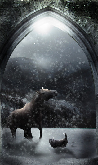 I'm so evil, I wrote that passage to make it seem more interesting. Anyway, this piece was as usual conceptual. There is a horse, who maybe has gone evil ( I wouldn't know) and a fairy who is his "guiding light" to help him. Took about 2 hours. Enjoy!