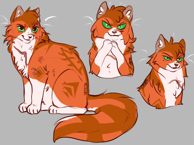 Here are a couple of doodles of Orangekit, to see how she moves and and acts. She's a little happy furball.Orangekit belongs to me.