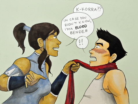 Poor Korra. I would like to a scene like this though. It would be rather sweet. I have a feeling that they are going to do an episode where she tries to be girly and pretty like Asami to get Mako's attention, but it backfires somehow.