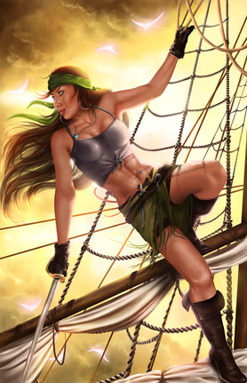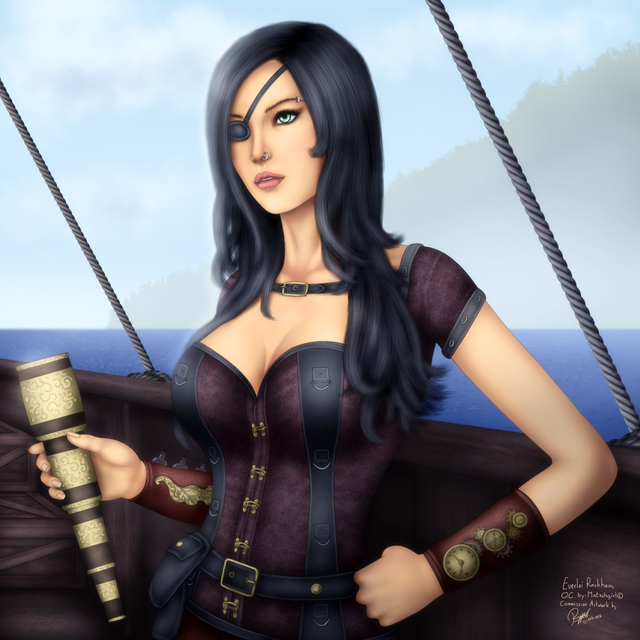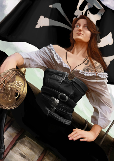 Actually, that just makes it a bit more interesting when trying to imagine what sort of a weapon your pirate lass might use. Might she be proficient with a cutlass, a rapier, or perhaps pistols? And that sort of a concept is cool too. I am very happy you like my Katarina painting also... it is one of my older ones, from when I first started doing that style of painting, but though old it is still interesting and one of my better-done images from that time.