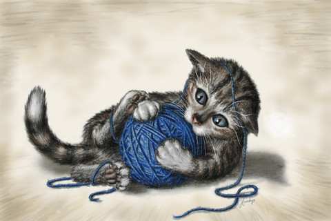 Such a cute little cat!!!!!I love the depth in its eyes and how realistic they are.It's also very awesome that even that the cat has such a serious look you understand it's probably a sportfull little fellow because of the string around it!!Well done!!!!