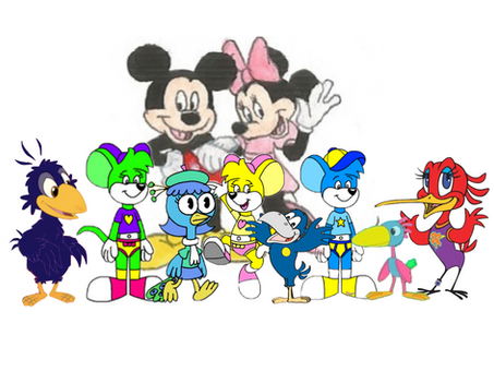 Included is Mickey, Minnie Mouse, Donald Duck, Scrooge McDuck, Oswald the Lucky Rabbit and Jose Carioca.