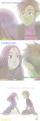 raven: *tearful* wait don't go ...please (beast boy walks into the light) i loved you too.
