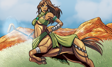 My fan art of Dora the Kentauride from Golden Axe: The Revenge of Death Adder.Golden Axe: The Revenge of Death Adder was a four player sequel beat-em-up to the first Golden Axe in the arcades. One of the four playable heroes was a female Centaur that used a large foam tipped staff and powerful hoof striking moves to knock out her enemies. Quite a surreal and fun game! There has not been a centaur protagonist main character in a videogame since then.
