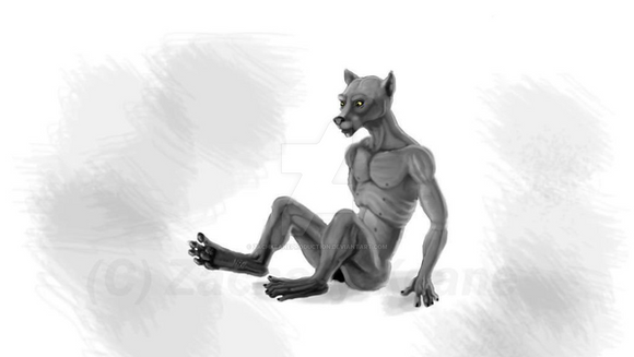 Beginning moments of a transformation into wolf.Inspired by An American Werewolf in London.
