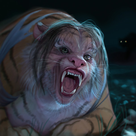 Thanks for the insight into puppy teeth. I've met young dogs with double fangs before. It looks pretty painful, poor things. I heard in some case they have to get the baby fangs removed. I like to imagine that in werewolves the cursed person's fangs grow inside their skull all month like adult teeth and then they erupt when they transform. I took reference from a bunch of stock photos of wolves yawning. I'm glad to hear I somewhat drew something realistic, as far as supernatural beings go.