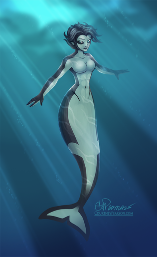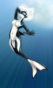 Wow!! Β What a beautiful exotic looking mermaid!! Β Her slender upper physique is just lovely!! Β Awesome looking mammalian tail, too! Β Sheβd look fantastic with webbed hands!!