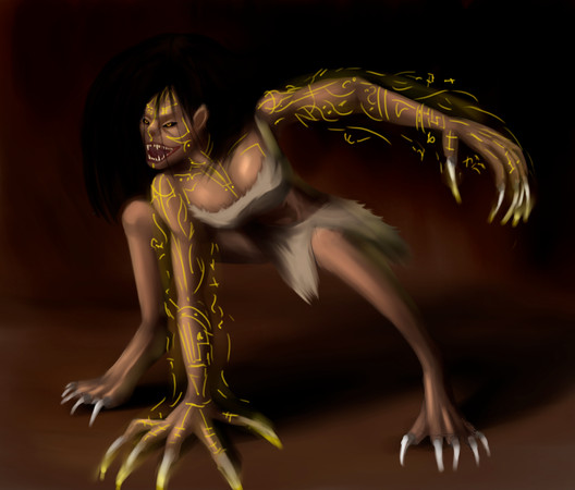 A shapeshifter slowly takes form into a creature of the night.