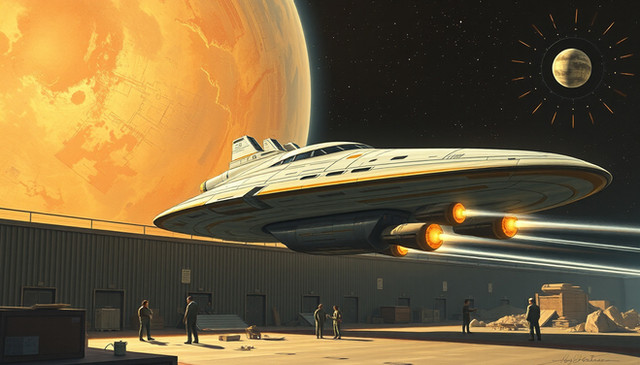 #allterrain #sciencefiction #scifi #shuttle #space #spaceshuttle #transport #vehicle #sydmead #aiart #aiartwork #aigeneratedart #midjourney #midjourneyart #midjourneyartwork