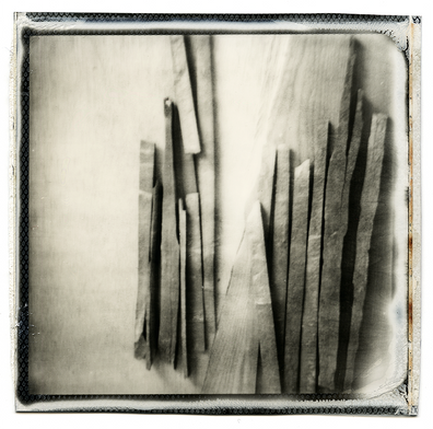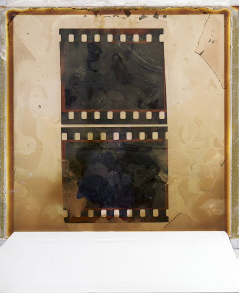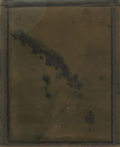 It's the backing paper from the peel-apart film. Since they sit against one another, it becomes a kind-of reflection to the original. (The original will be part of the :void or :malfunction series... I wouldn't know which one, 'cause I manipulate them a bit using the left over developer and I don't keep them together.) I think that answers all your questions, hah, but feel free to ask more if you want.