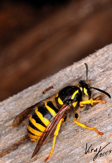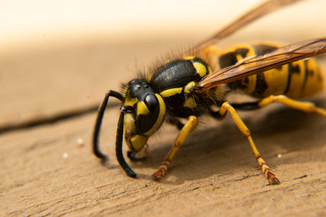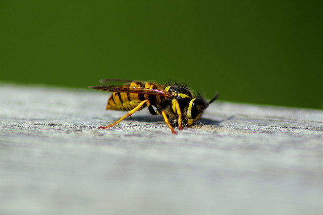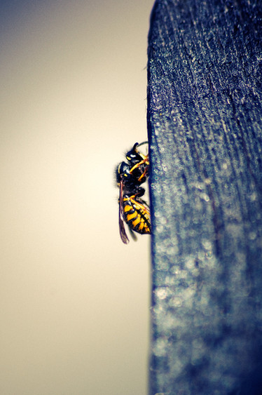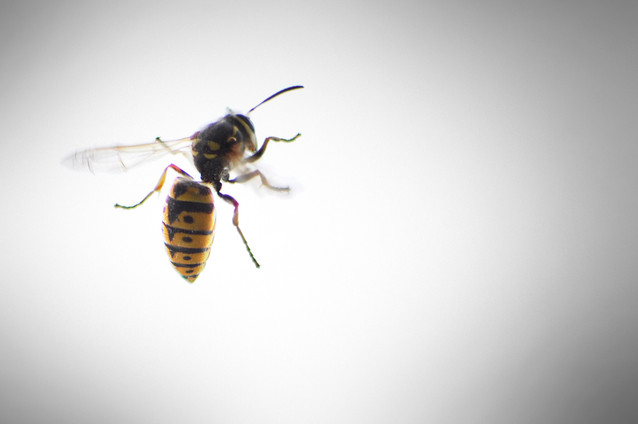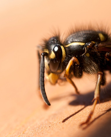 (BUt this is a wasp, not a bee.. bees have softer furry bodies