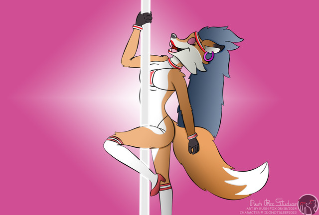 #anthro #bigboobs #blueeyes #female #fox #furry #girl #neonlights #pinkfur #pinkhair #poledancing #pusia #sexy #smile