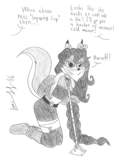 Li'll mouse Gadget Hackwrench got in yet another tight spot. I'm really satified with her eyes and all.Also added the "multi-view"-bubbles (at least that's what I call them), because it seemed so empty on the left side, and I wanted Gadget to squeek in one shot. Beacuse it's cute.