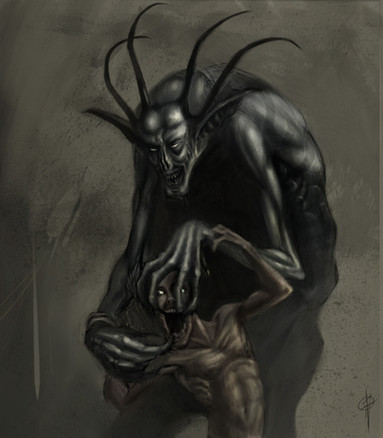 The human looks constipated. However I delightfully enjoyed the demon.