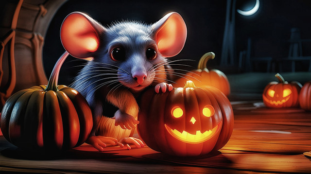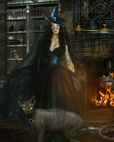 A white rat, conjuring up demons on all Hallow's Eve, by the purple flame; and protected, himself, by the purple smoke..(Just one of those works that started out with no real destiny and ended up with this. LOL )