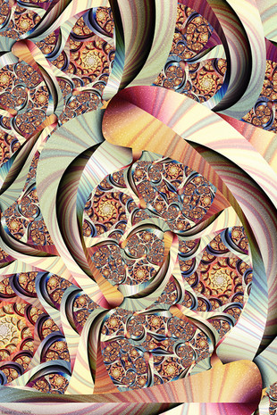 Apophysis 7x, minor HSB adjustments in Photoshopback to 2d fractals and to my most favorite flame style: lazysusan/julian