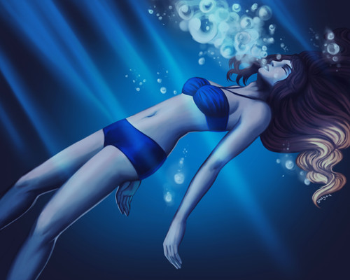 Agreed it's very nice! UuU Again the symmetry you can do is amazing and the details(fingernails, the bikini, uh strings or so!). I'd love to see you try drawing landscape one day, or something surreal! It'd be fabulous. The light on the bubbles is great or that, you know. And I don't think the arms are too short and it has ribcage and everything in place, it's all good.