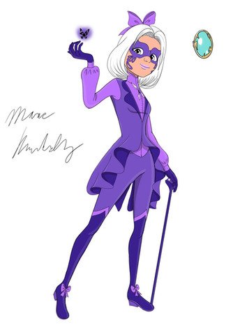 She holds the butterfly miraculous so I went for a more feminine and delicate look that would resemble Nooroo instead of Hawk Moth, that would still fit with the rest of the heroes and that, of course, would fit with Rose’s aesthetic. Among the notes I got for her was to include pink and white. And here we are!