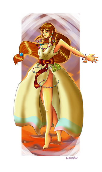 Oh my goodness, this is gorgeous. I just absolutely love the colors! Her dress is so intricate... and your anatomy looks flawless. You really deserve more favorites than this. Someone oughta pimp you