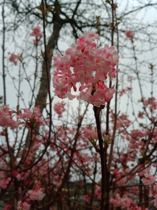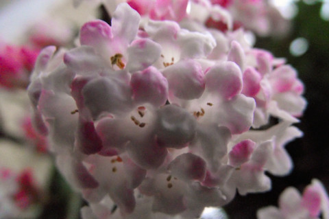 The tiny flowers of a Viburnum bush is whispering , Spring will soon be hereΒRelated content