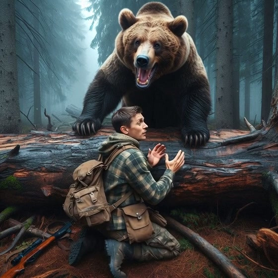 Sintarin - A handcuffed woman runs away from a bear [🤖]