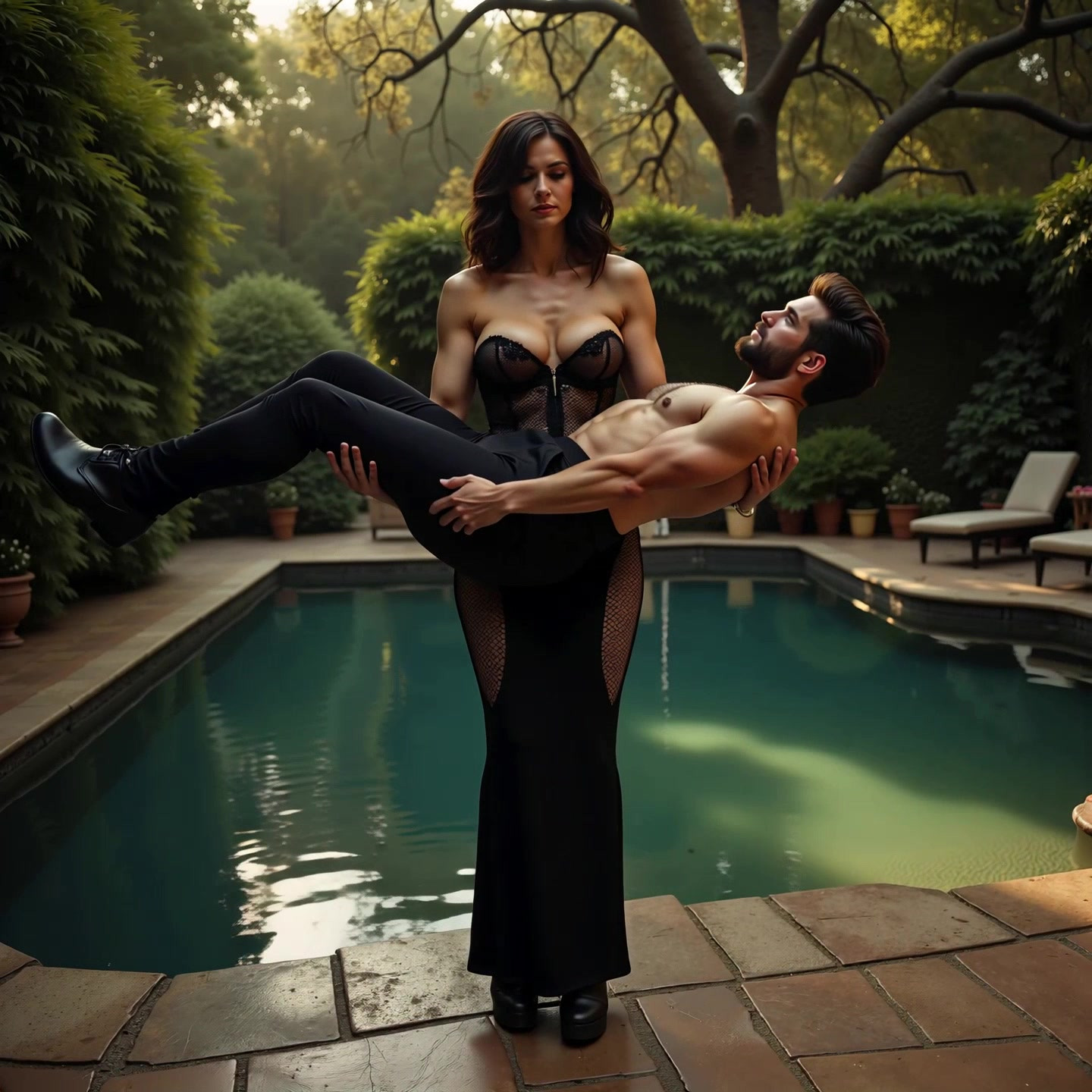 movielegend - Man Wrestling Swimsuit woman in Backyard [🤖]