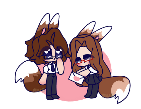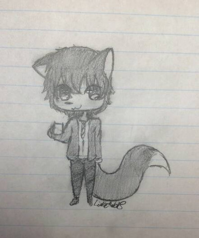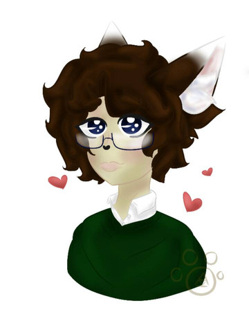 #anime #blueeyes #brownhair #chibi #chibiboy #coffee #coffeecup #cute #cuteboy #fox #foxboy #glasses #humanoid #scarfe #sweater #kemonomi