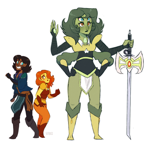 After stumbling across BeautySnake ‘s darling gemsona, Red, I couldn’t resist fusing her with my Aventurine. <3