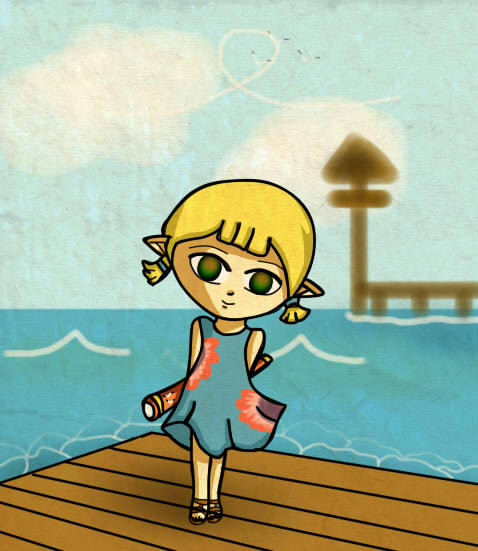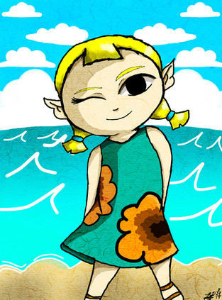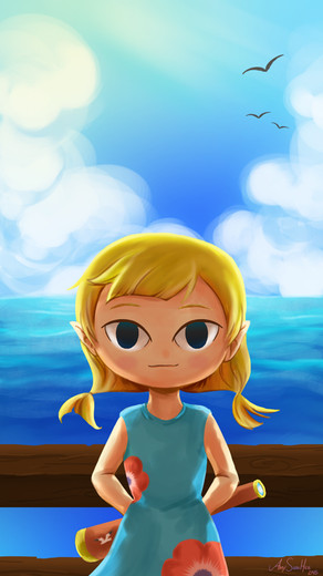 Well, anyways, here's young Aryll peering at us in front of the ocean.