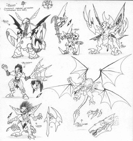 Appearance: Terrormon is a full fledged dragon unlike Dimmon who is only a entity in a dragon suit or armor. Its scaled body is black and its under skin is colored dark tan. Its claws and hair are a crimson red and so are its eyes.