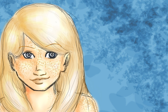 The original theme was BTS’ “Butterfly”, but it’s nighttime, and my eyes were starting to droop, and I can’t draw butterflies well, so I scrapped that idea. Then decided to go for the blue and yellow color scheme (like Portentous-Offerings Romeo and Juliet comic), and while listening to Owl City, drew yellow spots (or the fireflies) around Sabrina. Hence, Owl City’s “Firefies” became the new theme!
