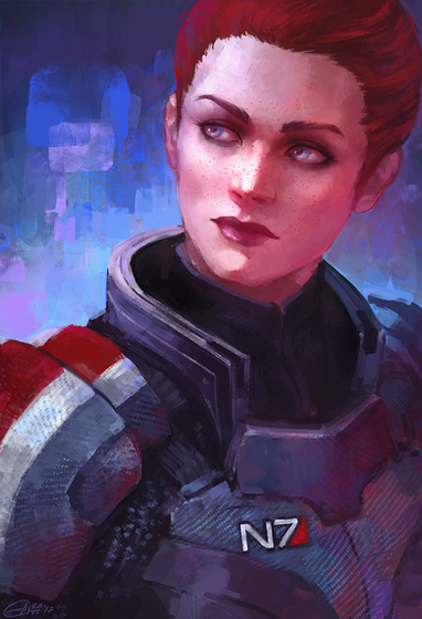 Anyone who has played the Mass Effect games know who this is. I'm still debating adding her scars, since she doesn't look entirely right without them to me.[link] This is also on tumblr! Please reblog that instead of making new posts with the art in.