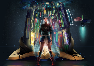 Aah... the details... Incredible really. I love to find manga artists who are not only good at people but buildings and such as well. Honestly, this looks like it could in the PV for a Vocaloid video. <3