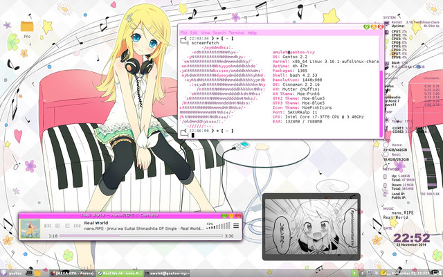 #cute #gentoo #linux #pink #virtualbox #winux #rinkagamine #windows8_1 #integration