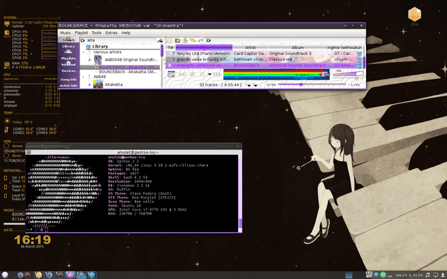 Cinnamon Theme: Moebuntu, custom bespin, modified Zukitwo theme and Orange Minty for borders.