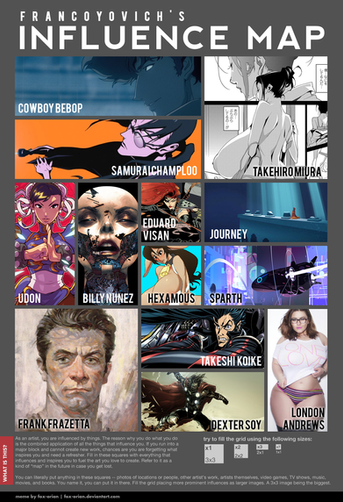 It could be ridicoulous, but thanks of you I have discouvered Katsuhiro Otomo. Thanks. I will look for the stuff from the artists I dont know in this fantastic Influence map. a really good quality inspiration.