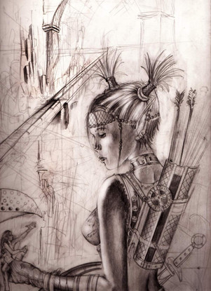 Well its drawn by hand using "old school techniques"...(sketch book and pencils)... and then colored using coral Painter 8. This is basically how I do all my images. The models come from everywhere but I've got a few favorites. Thanks for the comment.